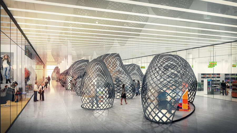 The ground floor was almost fully dedicated to a retail gallery space of 6,000sqm, including the outdoor terraces towards the sea. A very small portion of 300sqm located to the back side of the project houses the four generous public lifts connecting the ground floor hotel drop off lobby to the main esplanade of the hotel and the real lobby located 8m higher than the ground floor. This allowed a fantastic arrival view at the ground floor, immediately and directly connected to the lagoon.
