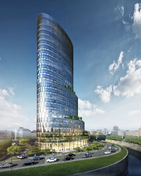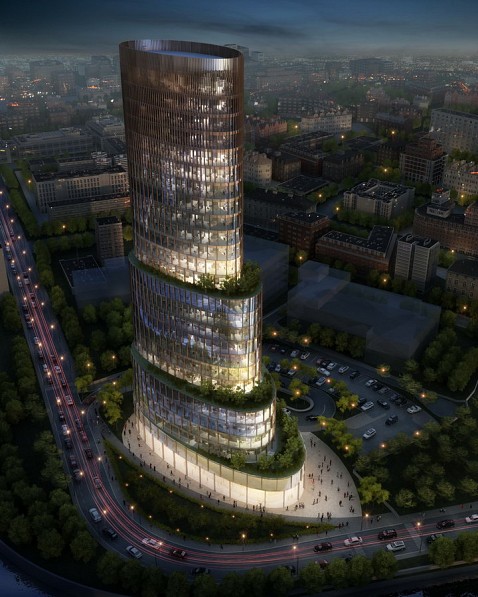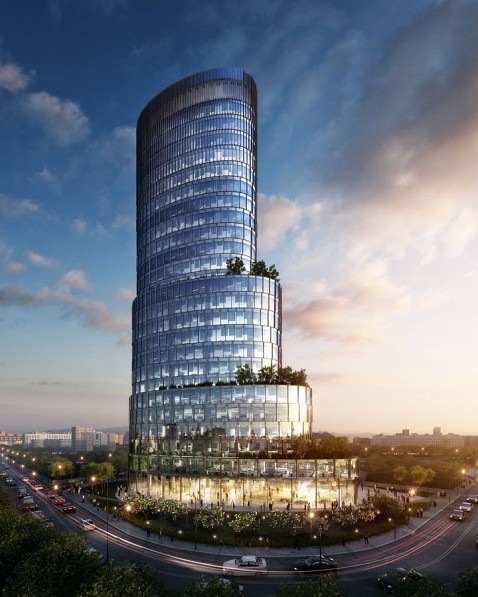 This second option is one which relies on the power of a high rise structure as an architectural statement. It stands at 28 floors high, stepping up with intermediate garden terraces reflecting the different tenancies planned for the project, culminating with a roof top offering 360 deg views.