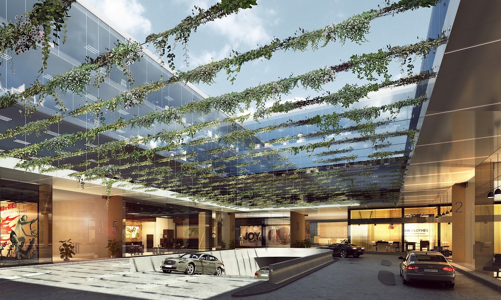 The outline of the external most skin was developed with the idea of creating deep perspectives from within the offices, especially for the offices which are not positioned on the main boulevard. The objective was to generate interesting views for the calmer and more secluded offices; the alternative being to build them at the exact setback limit of 3m with the property limit.
